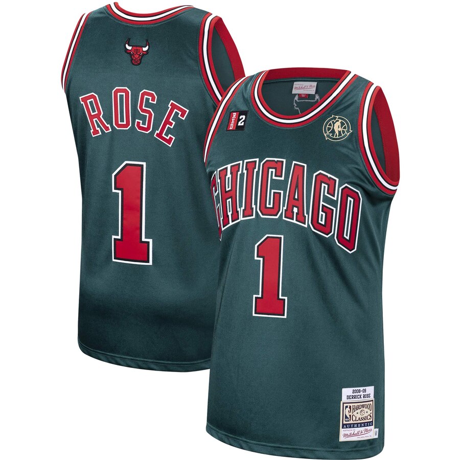 ID : Chicago Bulls Derrick Rose Mitchell & Ness Green Hardwood Classics 2008-09 Authentic Jersey