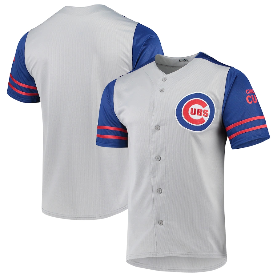 • ID : Chicago Cubs Stitches Button-Up Jersey - Gray Royal