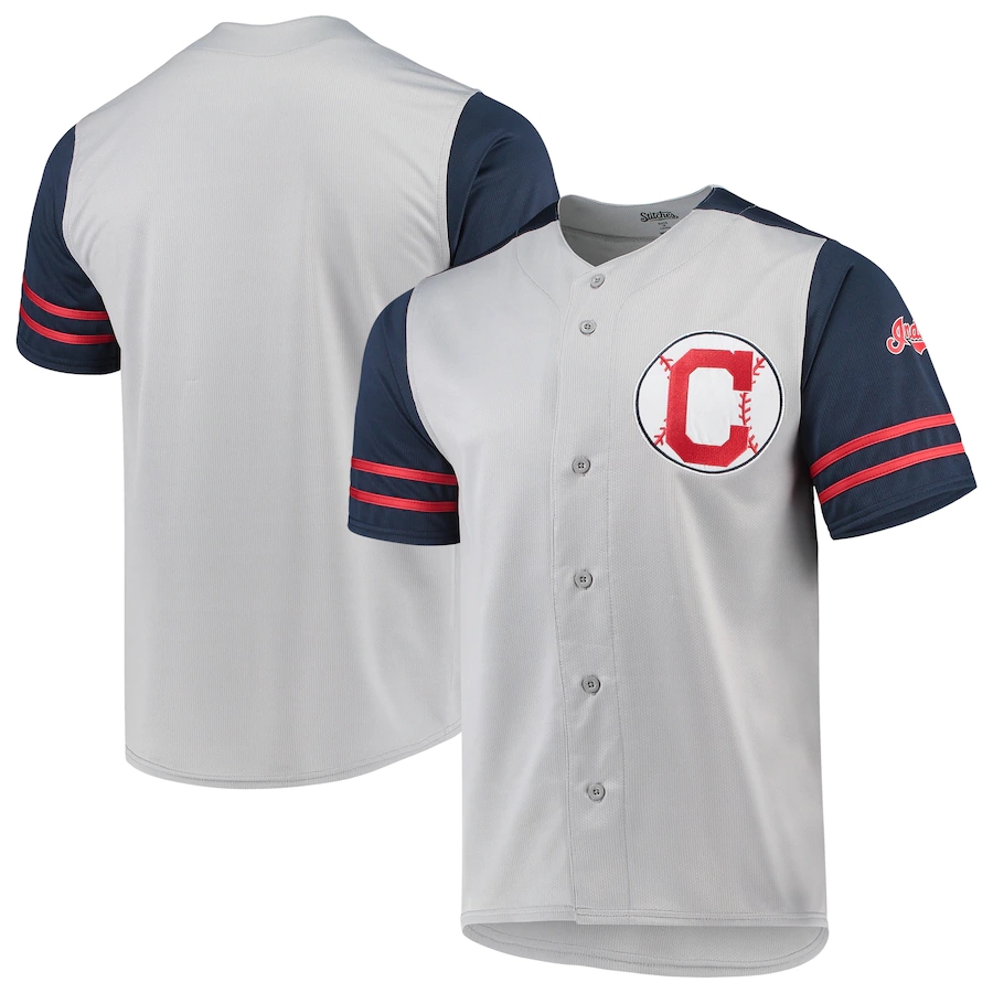 • ID : Cleveland Indians Stitches Button-Up Jersey - Gray Navy