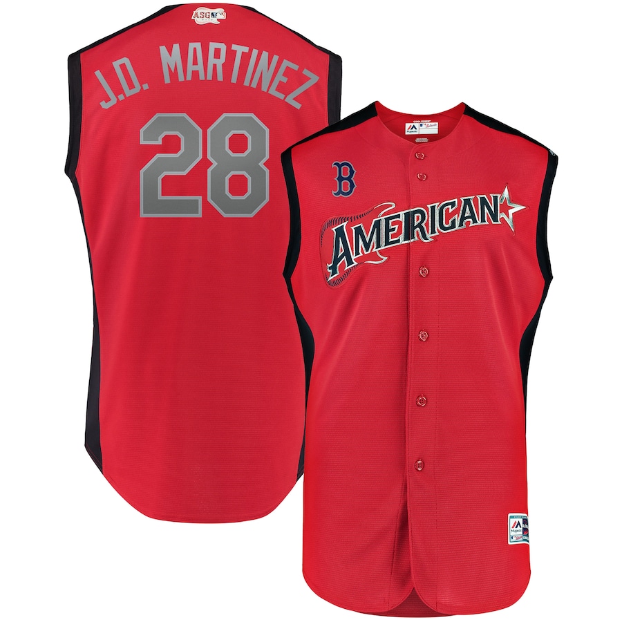 Men's American League JD Martinez Majestic Red 2019 MLB All-Star Game Workout Player Jersey Add to Favorites
