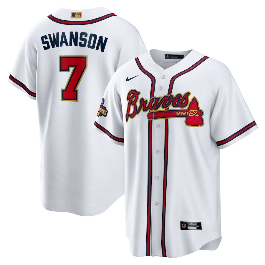 Men's Atlanta Braves Dansby Swanson Nike White 2022 Gold Program Replica Player Jersey