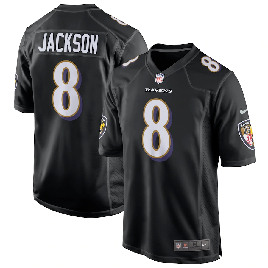 • ID : Men's Baltimore Ravens Lamar Jackson Nike Black Game Event Jersey