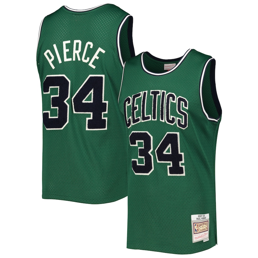 ID : Men's Boston Celtics Paul Pierce Mitchell & Ness Green Hardwood Classics Off-Court Swingman Jersey