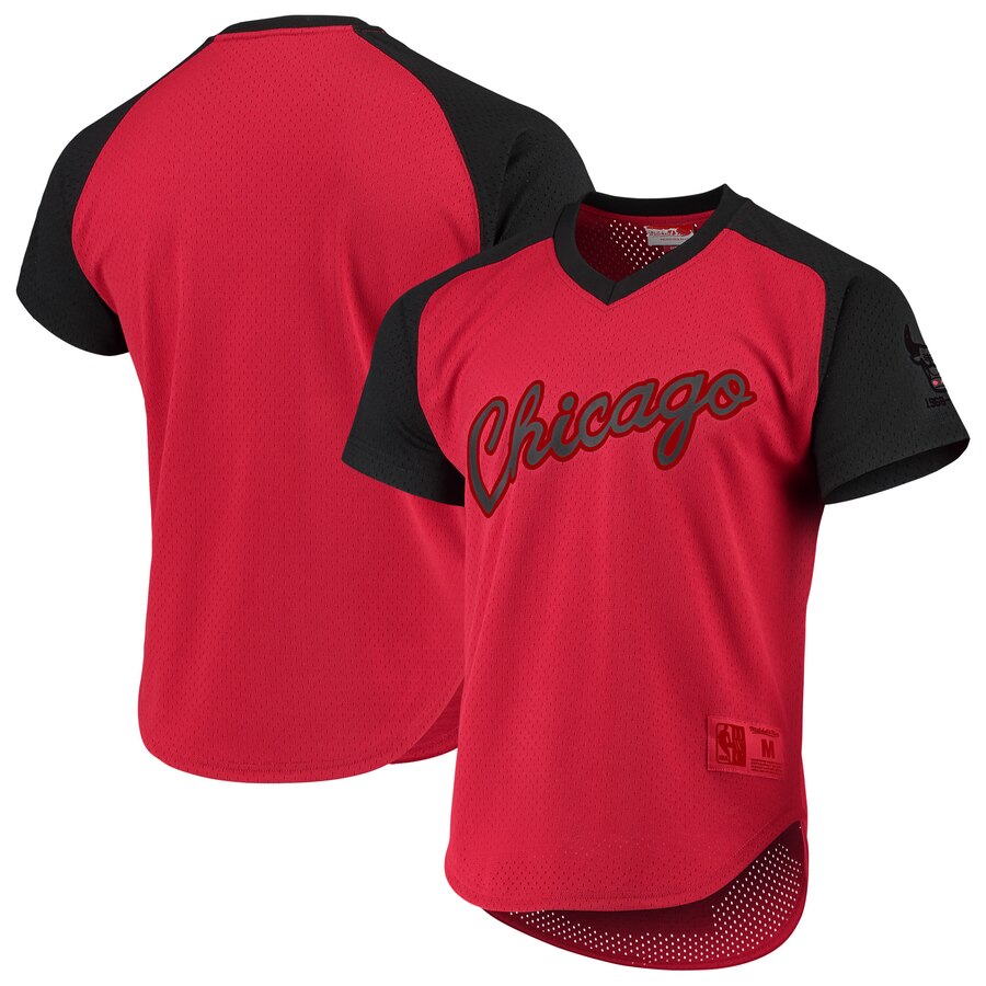 ID : Men's Chicago Bulls Mitchell & Ness Final Seconds Mesh Raglan Sleeve V-Neck T-Shirt
