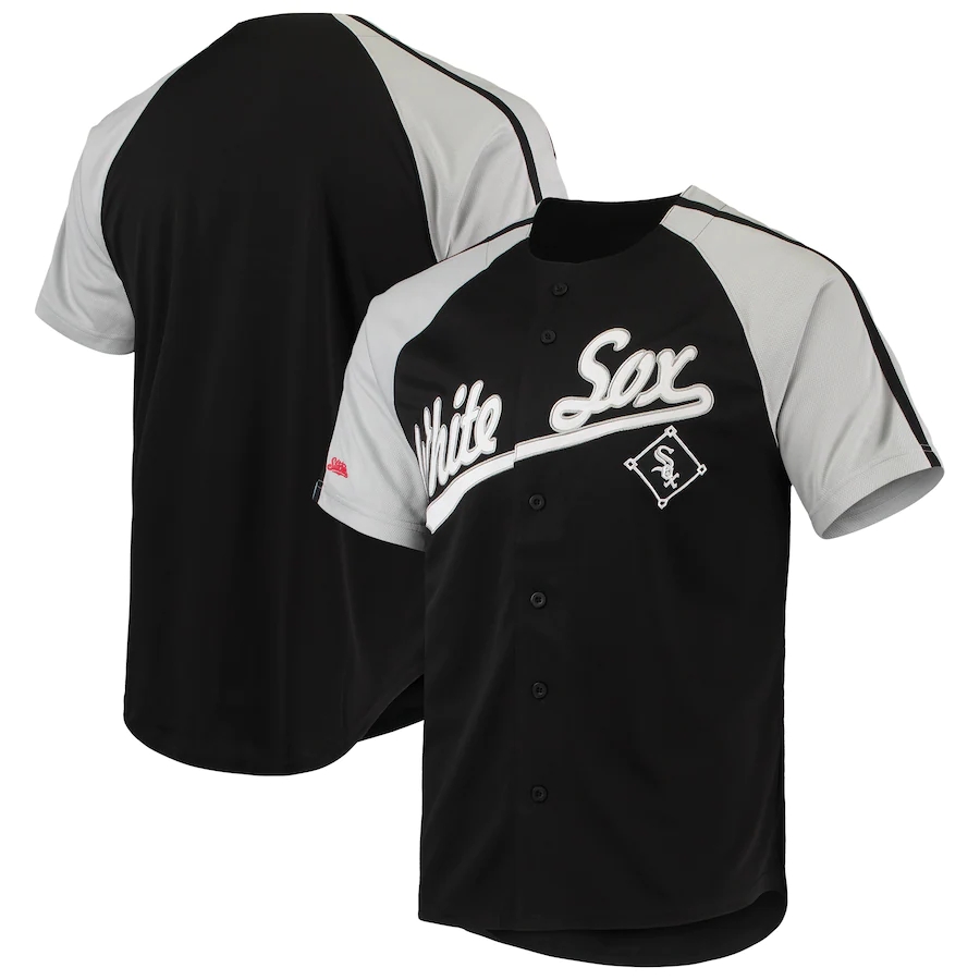 • ID : Men's Chicago White Sox Stitches Black Button-Down Raglan Replica Jersey