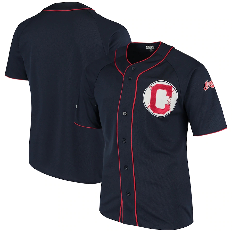 • ID : Men's Cleveland Indians Stitches Navy Team Color Full-Button Jersey