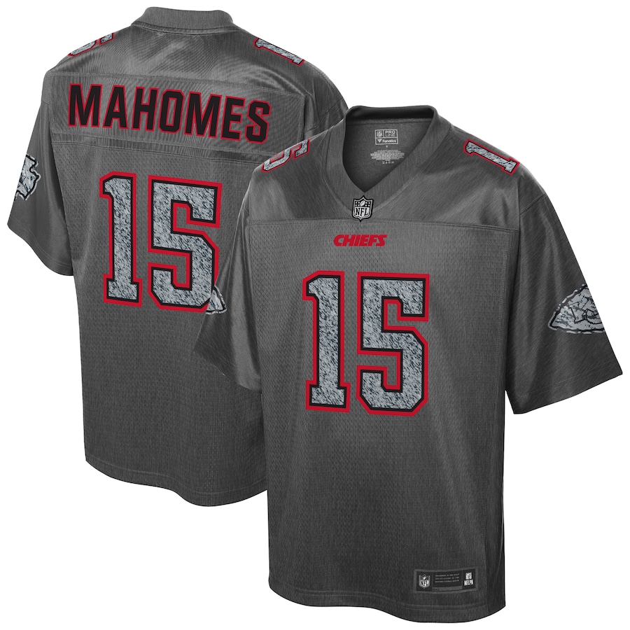 ID : Men's Kansas City Chiefs Patrick Mahomes NFL Pro Line Heather Charcoal Static Fashion Jersey