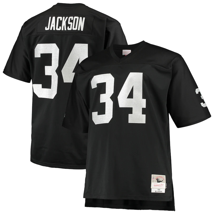 ID : Men's Las Vegas Raiders Bo Jackson Mitchell & Ness Black Big & Tall 1988 Retired Player Replica Jers