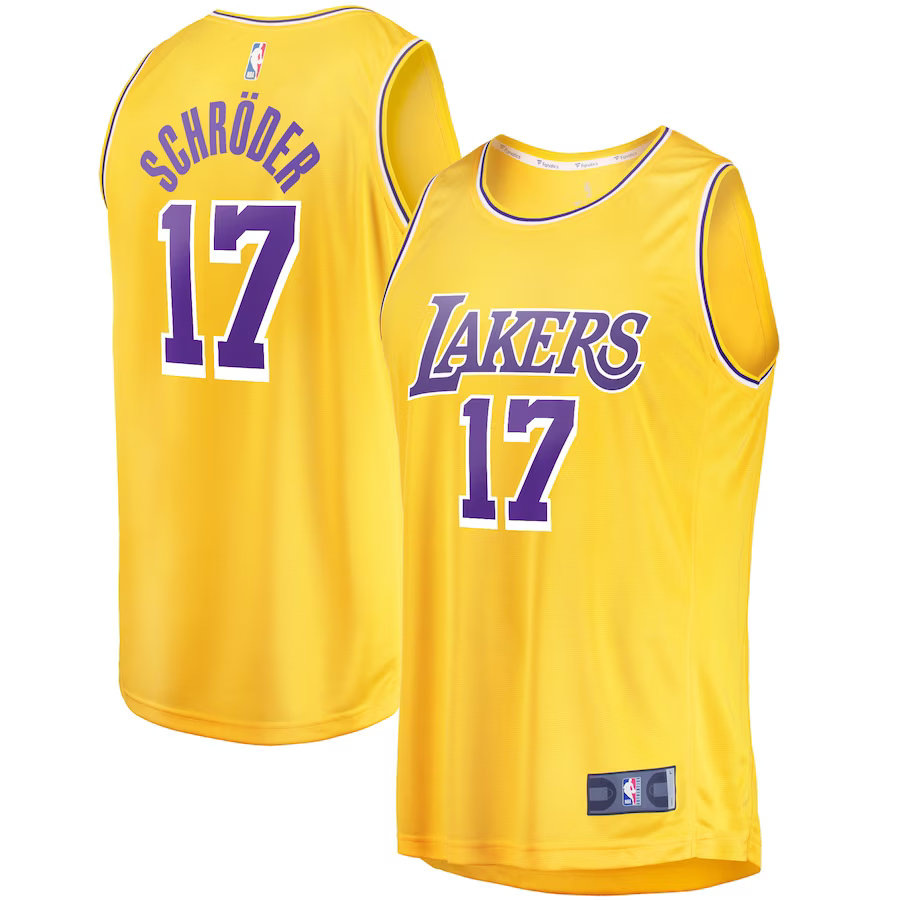 ID : Men's Los Angeles Lakers Dennis Schroder Fanatics Branded Gold Fast Break Player Jersey - Icon Editi