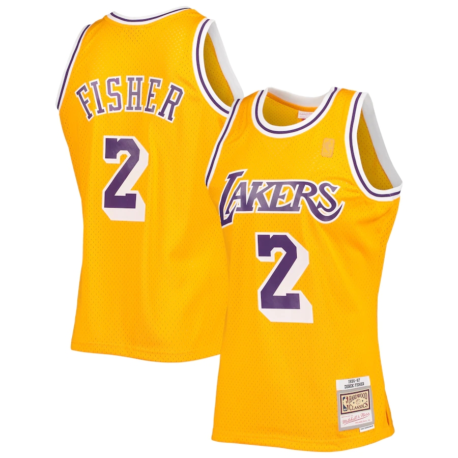 Men's Los Angeles Lakers Derek Fisher Mitchell & Ness Gold 1996-97 Hardwood Classics Swingman Jersey