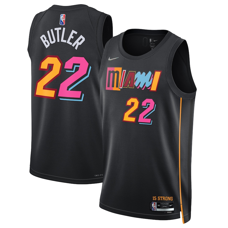 ID : Men's Miami Heat Jimmy Butler Nike Black 2021-22 Swingman Jersey - City Edition
