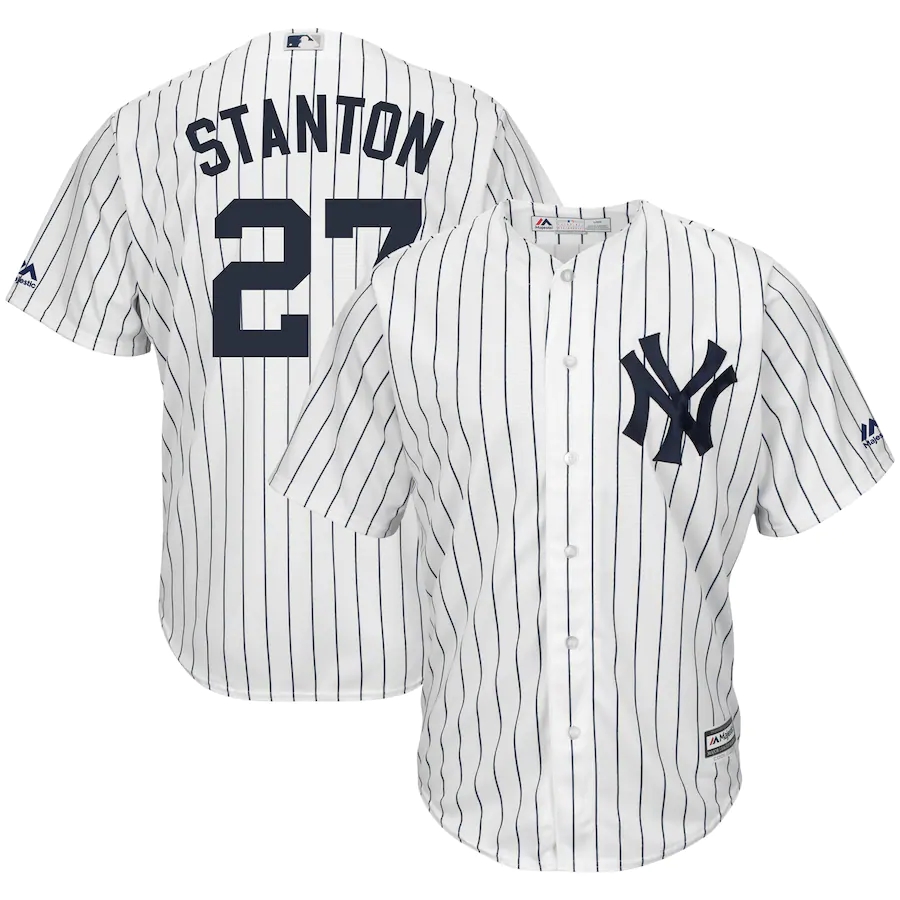 Men's New York Yankees Giancarlo Stanton Majestic White Navy Home Big & Tall Cool Base Player Jersey