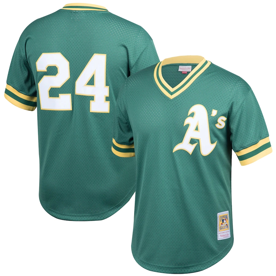 Men's Oakland Athletics Rickey Henderson Mitchell & Ness Green Cooperstown Collection Big & Tall Mesh Batting Practice Jersey