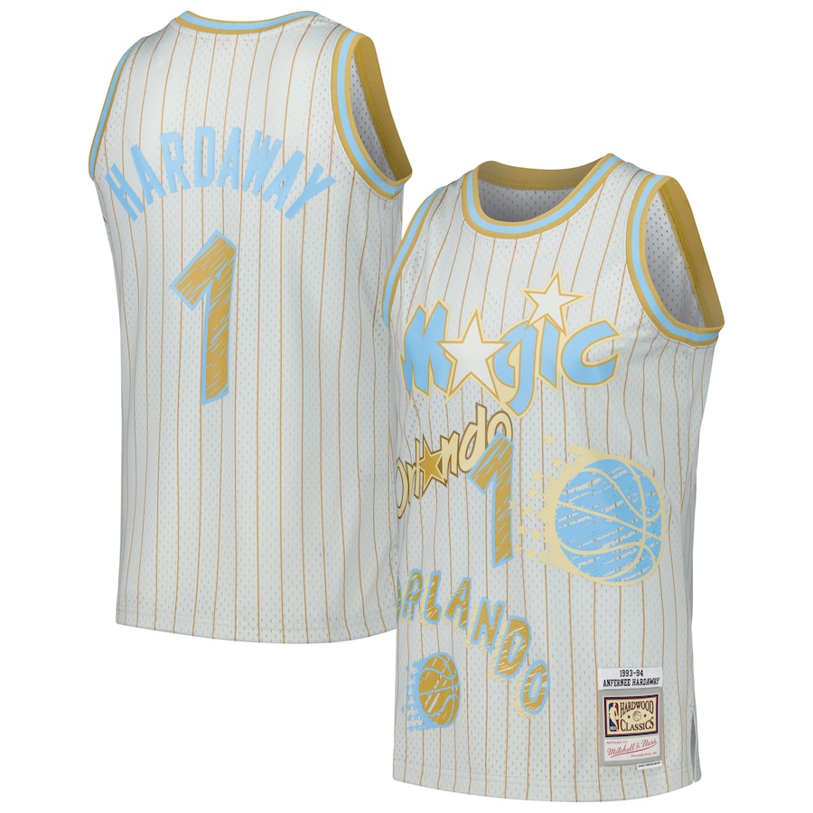 ID : Men's Orlando Magic Penny Hardaway Mitchell & Ness Gray 1993-94 Swingman Sidewalk Sketch Jersey