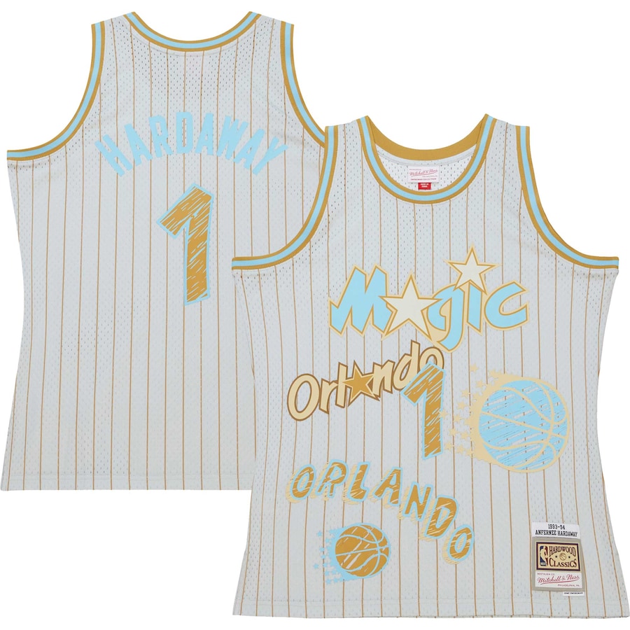 ID : Men's Orlando Magic Penny Hardaway Mitchell & Ness Gray Swingman Sidewalk Sketch Jersey