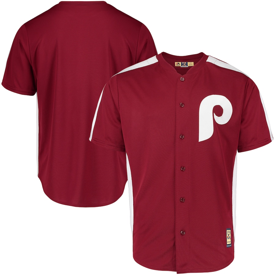 Men's Philadelphia Phillies Majestic Maroon 1979 Saturday Night Special Cool Base Cooperstown Team Jersey