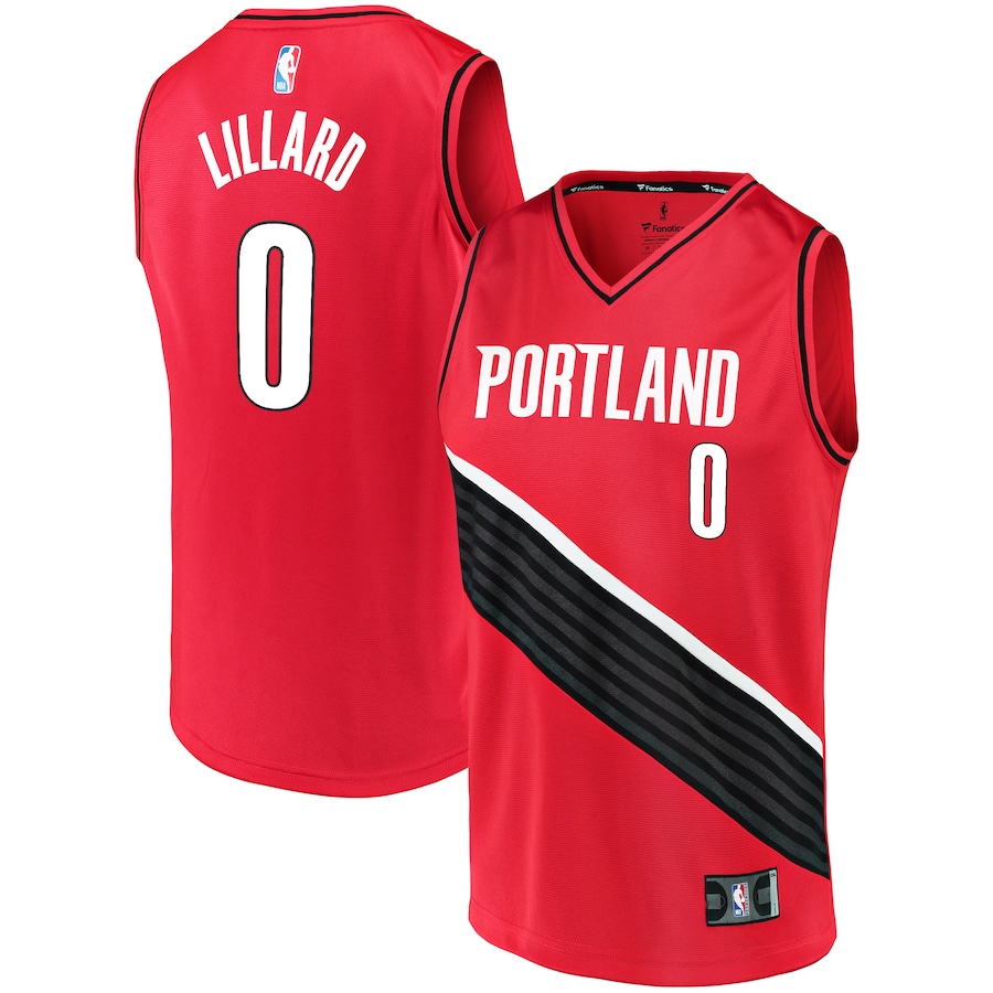 ID : Men's Portland Trail Blazers Damian Lillard Fast Break Team Replica Jersey - Statement Edition