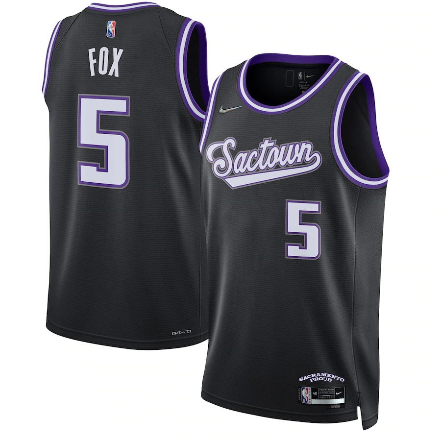ID : Men's Sacramento Kings De'Aaron Fox Nike Black 2021-22 Swingman Jersey - City Edition