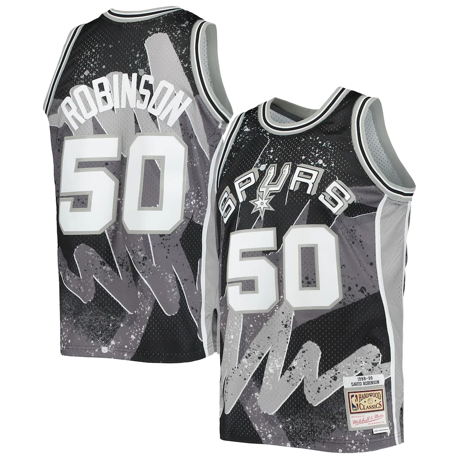 Men's San Antonio Spurs David Robinson Mitchell & Ness Black Hardwood Classics 1998-99 Hyper Hoops Swingman Jersey