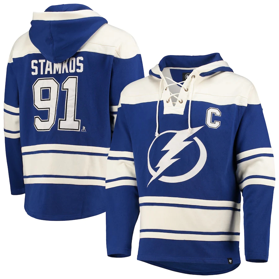 ID : Men's Tampa Bay Lightning Steven Stamkos '47 Blue Player Name & Number Lacer Pullover Hoodie