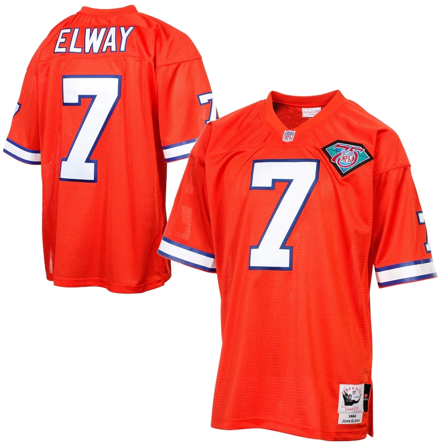 ID : Mens Denver Broncos John Elway Mitchell & Ness Orange Silver Anniversary Authentic Throwback Jersey