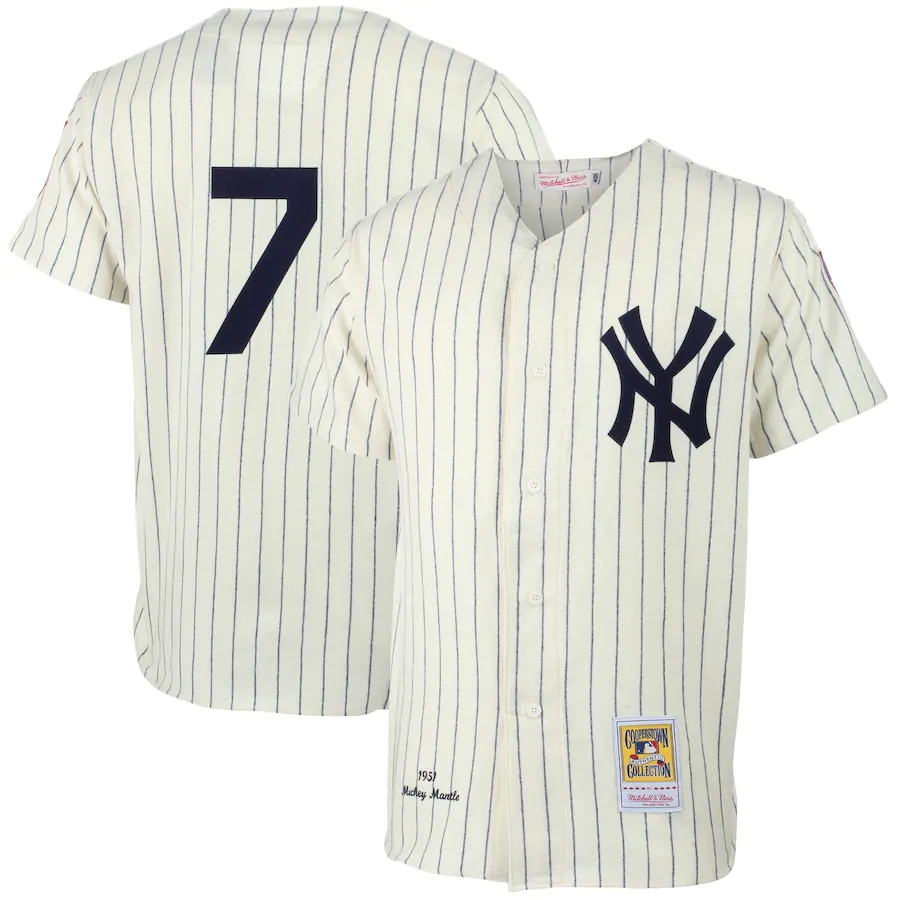 ID : Mens New York Yankees Mickey Mantle Mitchell & Ness Cream MLB Authentic Jersey